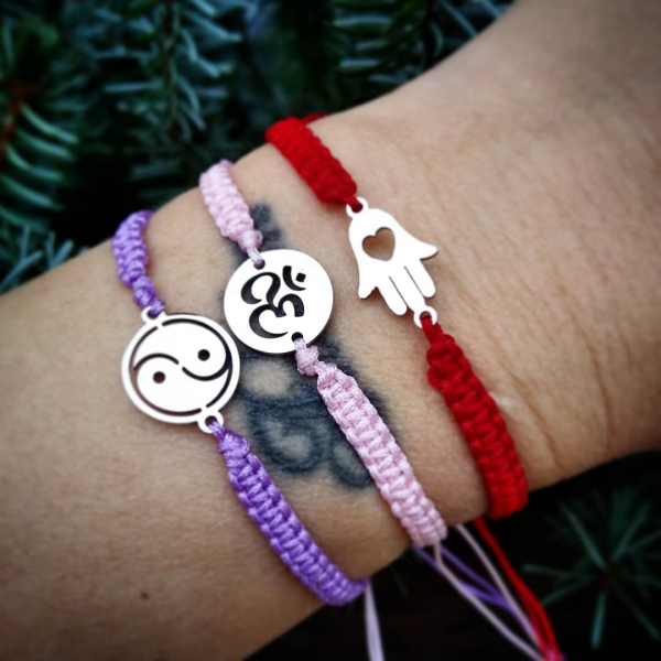 šňůrkový náramek s komponentem z chirurgické oceli jin a jang