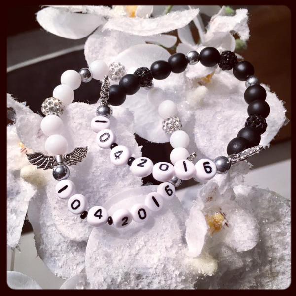 svatební náramky pro pár z přírodních korálků onyx s datumem